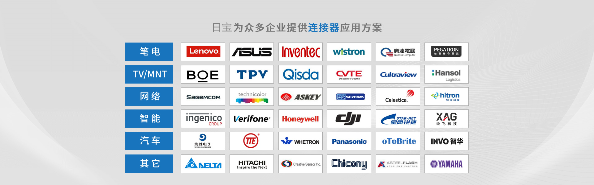 深圳市日寶電子科技有限公司創立于2015年,總部位于蘇州吳江區,總部公司成立于2005年,是一家專業從事精密連接器設計、制造及銷售的高新科技企業。產品廣泛應用于消費電子、汽車電子、網絡通訊及工業電子設備、軍工、航天航空、醫療器械等領域。目前公司產品除本土市場外,更遠銷歐、美、日等海外市場。 日寶電子注重長遠發展,先后取得ISO9001/14001質量與環境管理體系、IATF16949汽車質量管理體系、ISO13485醫療器械質量管理體系、UL,GB/T29490知識產權管理體系等認證, 并加入HDMI、USB等協會。 為提升企業核心競爭力,公司大力推進信息化與工業化的兩化融合建設,先后導入ERP、PLM、CRM、SRM、MES及OA等系統管理軟件,不斷自我提升,為打造新一代智能制造標桿企業不懈努力。 日寶電子擁有業界專業的電氣與機構研發技術團隊,相繼獲得260余項發明和實用新型專利,在這日新月異的科技時代,堅持以技術創新為導向,深度服務客戶...